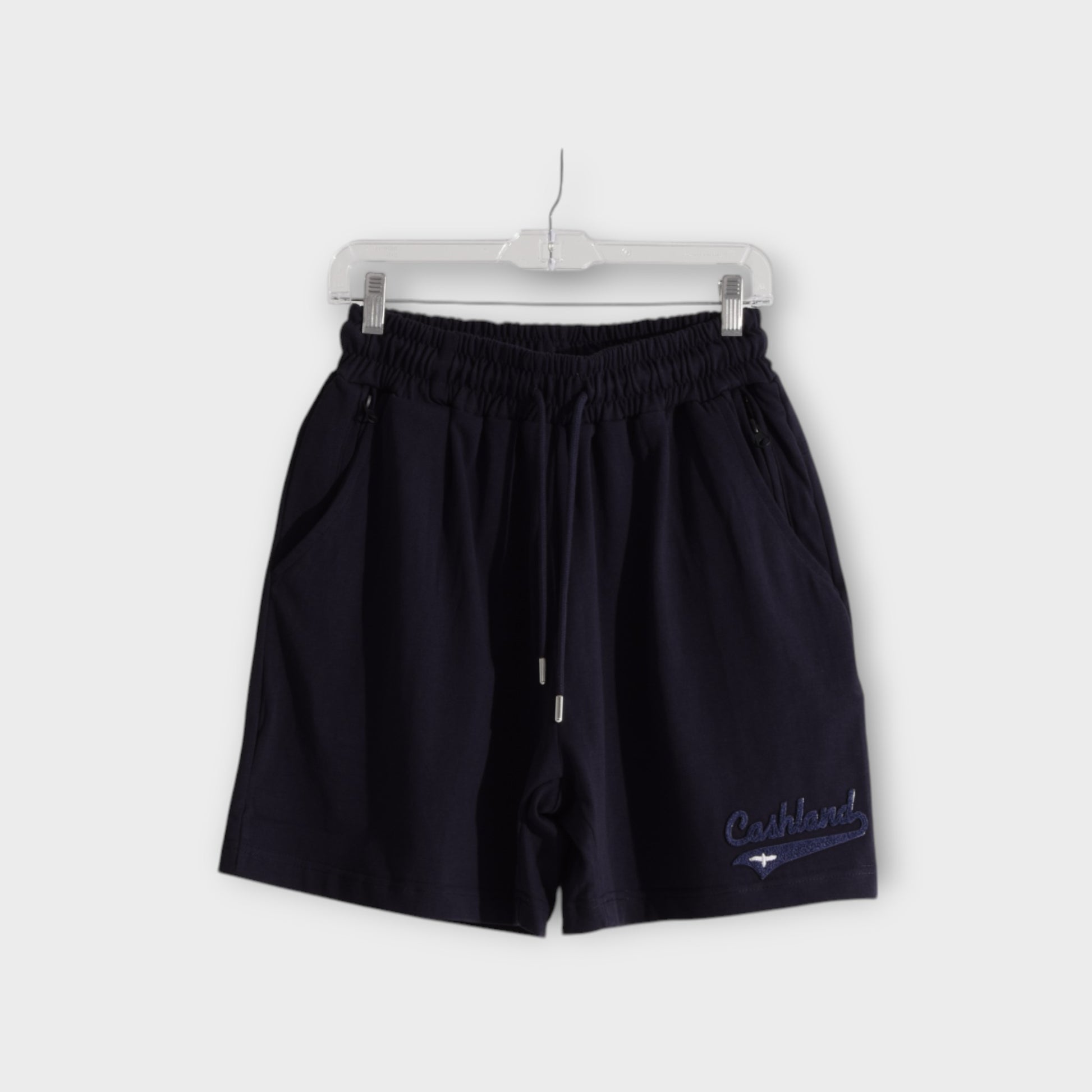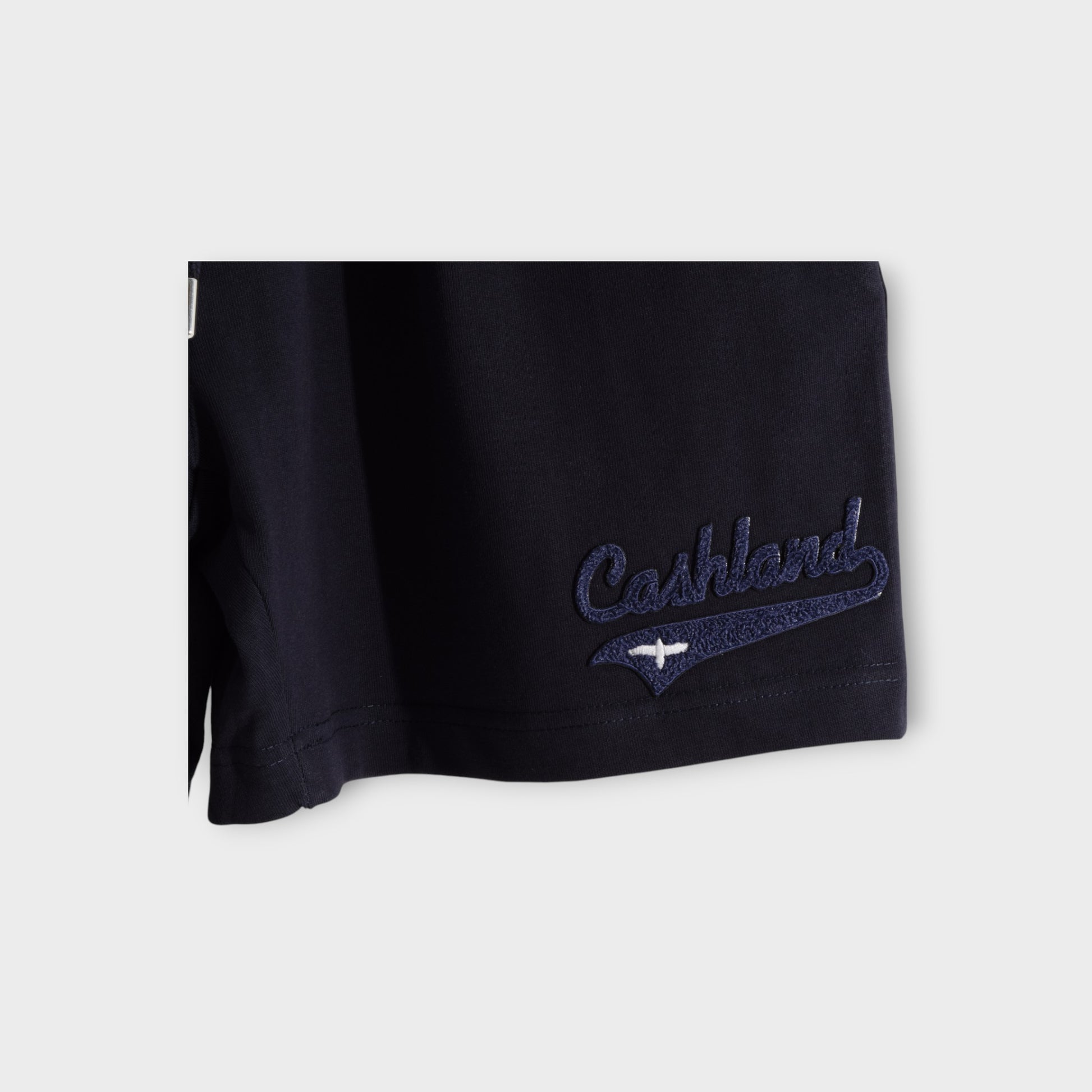 - Navy Chenille logo on Navy shorts